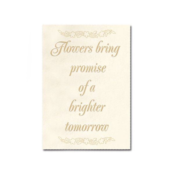 - Arrive in a custom-designed presentation case with a touching sentiment card that reads: 'Flowers bring promise of a brighter tomorrow'